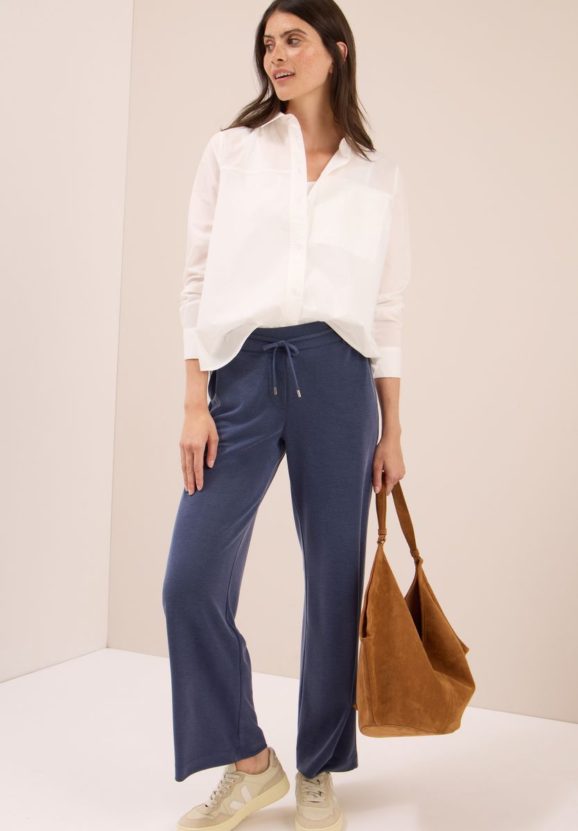 Die Wide Leg Hose im Style Neele von CECIL für Damen im vereint Loose Fit und eine hohe Taille für einen modernen Look und hohen Tragekomfort. Der elastische Bund mit Tunnelzug und die seitlichen Taschen runden das entspannte Design ab. Die Wide Legs verleihen der Hose ein besonders lockeres und bequemes Tragegefühl. Damenhose im Loose Fit High Waist und Wide Legs Seitliche Taschen Elastischer Bund mit Tunnelzug Angenehmer Modalmix Material: 58% Modal, 42% Polyester